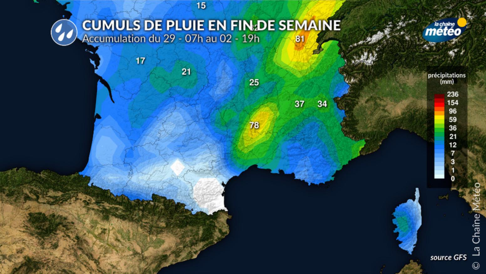 Régions exposées et cumuls attendus