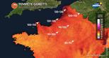 - Vent fort en hausse, jusqu’à 120 km/h sur les côtes de la Manche et de Bretagne en soirée à l'approche de Goretti.