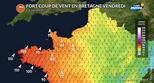 Dans les terres bretonnes, les rafales attendues seront de l'ordre de 80 à 90 km/h et ne devraient atteindre les 100 km/h que très localement sur les monts d'Arrée. On sera donc en dessous du seuil de la tempête.