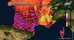 En cours de journée, la tramontane se renforce dans le Roussillon, principalement dans le pays de Fenouillèdes et des Corbières. Les rafales atteignent localement 130 à 140 km/h. Une rafale à 123 km/h est enregistrée à Perpignan. Le vent se renforce aussi sur les caps exposés de la Corse et sur la montagne. Jusqu'à 173 km/h ont été relevés à Cagnano (2B).