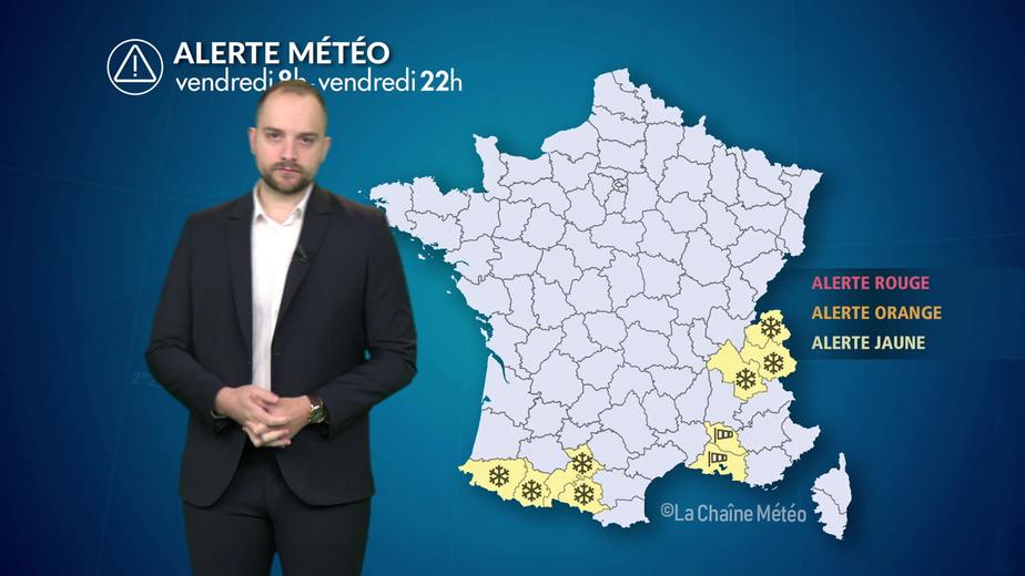 Un flux froid de secteur nord à nord-est s’installe ce vendredi entre les Alpes et les Pyrénées, avec des températures très basses pour la saison et un vent sensible renforçant le ressenti hivernal. Dans ce contexte instable, la neige peut descendre très bas, parfois jusqu’en plaine, tandis que les massifs connaissent un nouvel apport conséquent, en particulier les Pyrénées. On attend 1 à 3 cm dans les grandes vallées alpines, 3 à 5 cm sur le piémont pyrénéen dès 300 m, et de 15 à 20 cm à 1500 m d'altitude. Le vent provoquera des congères tandis que le grand froid sera dangereux en haute montagne.