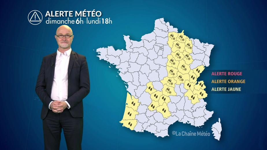 Par ailleurs, une perturbation très active venant de l'Atlantique provoque des pluies durables et abondantes de l'Aquitaine à Rhône-Alpes au Jura de dimanche à mardi prochain pouvant provoquer des ruissellements importants, voire quelques inondations ponctuelles. En montagne, de nouvelles conditions de blizzard s'installent.