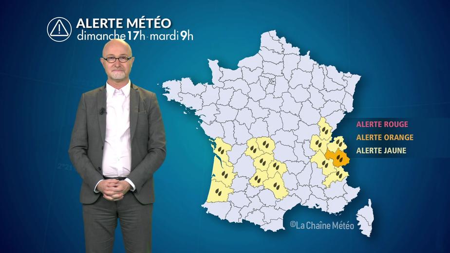 Ce dimanche à 17h, les s'étendent de l'Aquitaine à Rhône-Alpes jusqu'au Jura. Elles sont continues et d'intensité modérée. Depuis ce matin, il est déjà de 5 à 20 mm d'eau sur les départements en alerte.