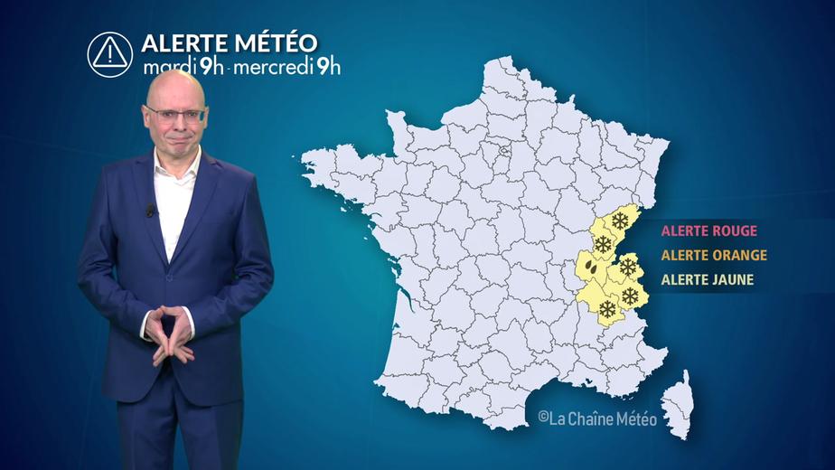 Une perturbation venue de l’Atlantique apporte des pluies durables et abondantes dans le centre-est jusqu'à mercredi matin, avec des risques de ruissellements et quelques inondations ponctuelles, d’où le passage en alerte de plusieurs tronçons par Vigicrues, comme pour la Loue (Doubs) ou l'Allan. Sur les reliefs du Jura et du nord des Alpes, le vent d’ouest humide génère d’intenses précipitations par effet orographique.